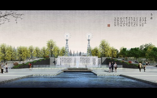 印象宿州風車瀑布廣場節(jié)點位于新汴河風景區(qū)206國道東側(cè),總設計面積約20700㎡。設計理念意圖用動態(tài)水景的多層之勢體現(xiàn)城市發(fā)展之活力,表現(xiàn)出宿州城市動感,向上的城市風貌。另外,在古詩中廣為流傳的宿州八景也通過繪畫和雕刻的形式在廣場上展現(xiàn),生動地體現(xiàn)宿州市變化的滄海桑田,讓游人憶古惜今,領略宿州城市的巨大變化。